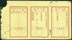 1930's Red Posts Registration Receipt printed in red, complete with three portions, some wormholes not affecting design, unused,