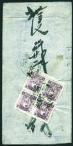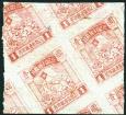 1938 Chin-Cha-Ki Border area, White full Sun of Nationalist China, 1c purple 1st print on brown paper block of 4 with large margin