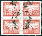 1949 Postal Runner & Train issue, Shanghai print, $15 vermillion, block of 4, used with SzeshuihsienPienkiao Post Office _ month