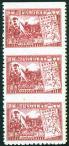 1949 Tientsin print, Train and Postal Runner $5 brown vert. strip of 6 imperf. horiz. Unused and fresh. Yang EC409b. Photo