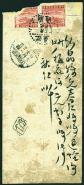 1949 Su-Nan Surch. on Su-Wan Train issue, $2 on 50c light blue, imperf. block of 4, used with KiangsuYangszekiao