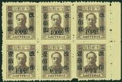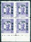 1947 Surch. on 1st print, Chairman Mao with new value $100 on $1 pale violet block of 4 with bottom sheet margin, surch. inverted