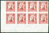 1947 Surch. on 1st print, Chairman Mao with new value $100 on $2 rose red in green left bottom corner block of 8, unused and light
