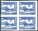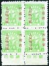 1949 Kuo-KwongWorker-Peasant-Soldier 2nd print, $100 green, block of 4, used with Hunan Hwanghsien (