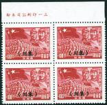 1949 Opt. on Marching of People's Liberation Army with char. 'East Szechuan' completer set of 2 plus block of 4 with top margin