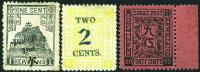 A small selection of Kewkiang mint stamps on leaves, including 1st, 2nd & 3rd issues. Surch. set of 2 with shades, 'Postage Due'