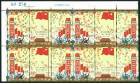 1964 15th Anniv. Of Founding of PRC (C106). Complete set of 3 in blocks of 4 with corner imprint. Folded in the middle, colour
