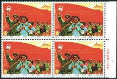 1967 Long Live Chairman Mao (W2). Complete set of 8 in blocks of 4. Unmounted original gum (W16, 17, 18, 19) with margin.