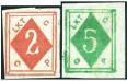 1899 Wei Hai Wei Courier Post 2nd issue 2c red and 5c olive green imperf. proof plus 5c olive green faded colour. Chan LWH3-4.