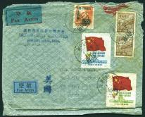 1950 (30 Oct.) An air mail cover form Changchow, Fukien to New York, USA. Bearing RI Tien An Men $2,000 and $5,000 in pair