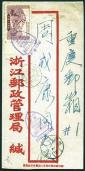 1951 (16 Aug.) cover to England via Hong Kong f.w. on front Tien An Men 1st print $500 and 4th print $2,000, tied by Shanghai