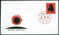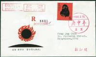 1980 Year of Monkey (T46) FDC with red chop mailed to Singapore. Photo