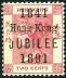 1891 Jubilee 2c carmine, with broken 2nd 'E' in 'JUBILEE' variety, position 4, 1st printing. Hinged, toned and gum disturbed. Yang