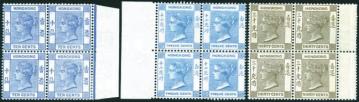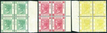 1900 QV 3rd issues 2c to 30c complete set of 6 in marginal blocks of 4, umounted and gum lightly toned but fresh on surface. Yang