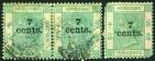 1891 QV surchagred 7c on 10c green horizontal pair, left stamp showing antique ‘t’ of ‘cants’, used and single stamp showing an