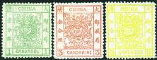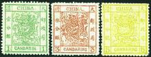 1878 Large Dragon Thin paper 1cd green to 5cds yellow complete set of 3, 3cds no gum. Others lightly hinged. Chan 1-2, 3a.