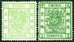 1878 Large Dragon Thin paper 1cd yellow green and deep green, both no gum, 1cd deep green missing one perf. at left side