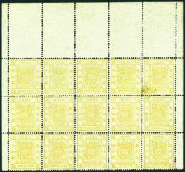 1878 Large Dragon Thin paper, 5cds orange large block of 15, with full margins on 3 sides, right top stamps with tone marks,
