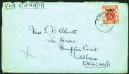 1929 Opt. 'CHINA' on KGV 4c to Middlesex, England, tied by 'LIU.KUNG.TAU' cds, via Canada. With contents. Photo