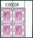 1941 KGVI 2nd issue, perf. 14.5 x 14, 2c slate gery, 4c orange, 10c violet and 50c red purple each with corner block of 4 with plate