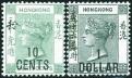 1898 QV 7th surch. $1 on 96c gery black and 8th 10c on 30c yellow green with Chinese char. Hinged. Yang 51, 54