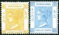 1863 QV 2nd issue, 8c pale dull orange, no gum and 12c pale greenish blue, light toned. Yang 11-2. Photo