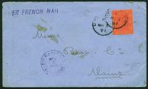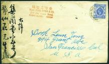 1922 (3 Apr.) A cover to USA bearing KGV 10c tied by 'SHEUNG WAN' cds, Webb type H and 1925.9.7 a cover to Canton bearing