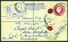 1931 (29 May) British Registered Letter envelope KGV 4-1/2d, sent to England via Siberia, cancelled by ARMY POST OFFICE 1