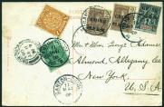 1906 (11 May) A pc from Canton to USA, via Hong Kong. Bearing 4th surcharged on French stamps, 2/5c on 1c, 4/5c on 2c x 2,