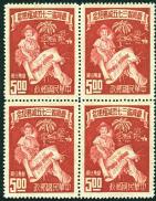 1952 Reduction of Land Rend in Taiwan 20c to $5 complete set of 6 in blocks of 4, fine and no gum as issued. From the collection