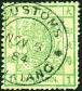 1878 Large Dragon, thin paper, 1cd green. Used with large part of 'CUSTOMS JUN 9 80'cds. Thinned and upper left corner missing