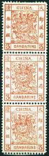 1878 Large Dragon Thin paper 3 cands brown red, vertical strip of 3, light hinge on top stamp and