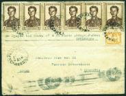 1921 (3 Oct.) A red band cover from Mongolia to Kiukiang, bearing 1c blue and 5c plum tied by 'ALTANBULAK/MONOLIA' box