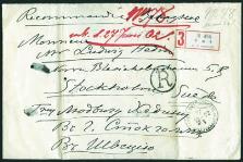1902 (19 Feb.) A reg. cover from Sven Hedin from his sister in Stockholm, Sweden. h/s 'R' reg. mark in black circle, on reverse with