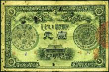 Ching Dynasty Kuang Hsu Yuan Pao Note (7.2 mace) canton Province issued 1905. poor condition. Photo