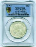 1914 ROC Yuan Shih - Kai Silver coin, 50 cents. (PCGS MS62). Photo