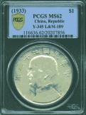 1933 ROC One Dollar SYS Year 22 Silver coin, Junk reverse. (PCGS MS62). Photo