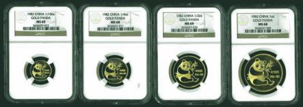 1982 PRC Panda Gold Coin (4 pieces) including 1oz, 1/2oz, 1/4oz, 1/10oz. (NGC 68 - 69). Photo