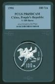 1990 Horses 100 Yuan Silver coin. PCGS PR65DCAM. Fine. Photo
