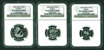 1990 Proof Panda Platinum coin (3 pieces) including 1/2oz, 1/4oz, 1/10oz. All (NGC PF 69 Ultra - Cameo). Photo