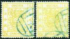 1878 Large Dragon Thin paper 5cds orange x 4, 1885 Rough perf. 5 cds chrome yellow x 2, all tied by seal chop, condition mixed.