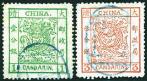 1882 Large Dragon Wide margin 1cd green and 3cds brown red. Both tied by seal chop. Chan 5-6. Photo