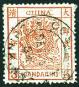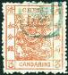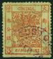 1883 Large Dragon thick paper, 5cds used with part of 'Postage Paid, Don't Demand' chop in black, with a tiny hole at left hand