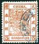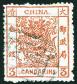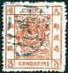 1885 Large Dragon Rough perf. 3cds vermilion, tied by full 'PEKING' seal chop in blue. Fine used. Chan 11. Photo