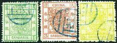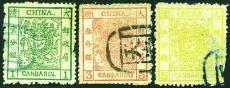 1885 Customs Large Dragon, thick paper, rough perf., 1Cd., 3Cds. And 5Cds., complete set of 3, all used with Tientsin seal cancels
