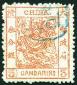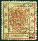 1885 Large Dragon Rough perf. 3cds vermilion cliché 4 with semi circle at right of lower left '3', used. Chan 11f. Photo