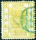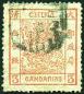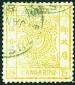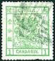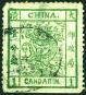 1882 Large Dragon Wide margin 1cd green, Pelure paper, used with blunt perf. at the bottom. Chan 4c. Photo