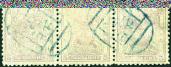 1888 Small Dragon 11 1/2 perf. 3cds mauve in strip of 3 with gutter pair, used, left stamp thinned and missing a few perf. at left
