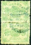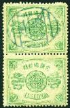 1894 Dowager 1st print 9cds dull green vert. pair, tied by 'CUSTOMS/SHANGHAI/24.12.96' cds. Toned. Chan 28. Photo