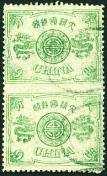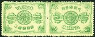1894 Dowager 1st print, 9 cds dull green vertical pair imperforate between variety, light crease at the bottom left corner, very rare,